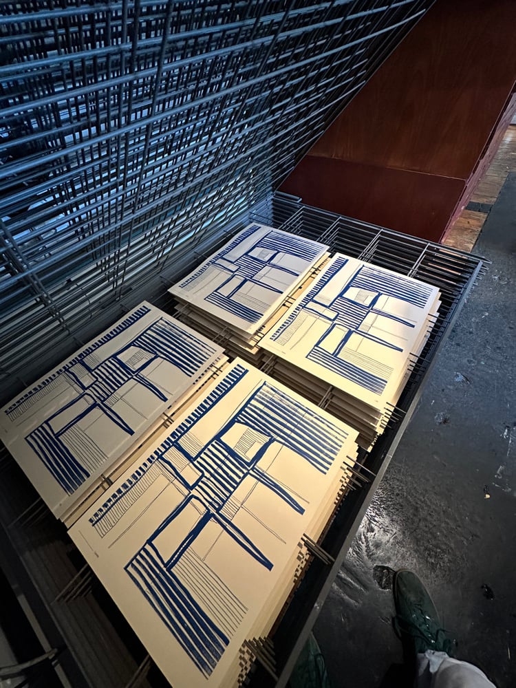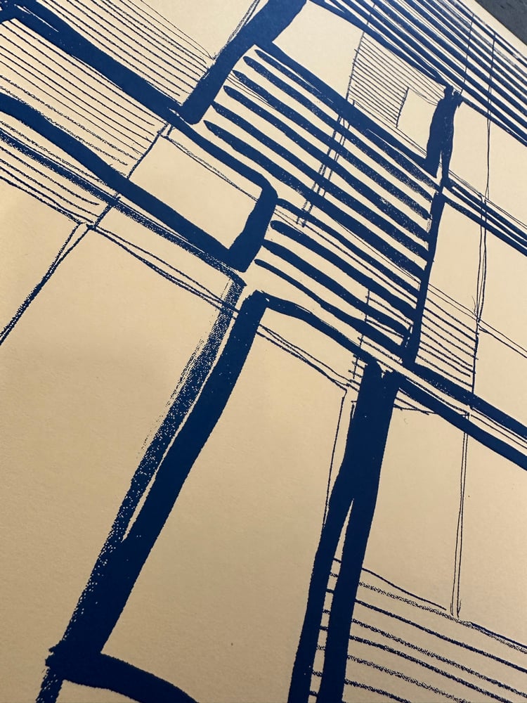 An A2 screen print (42cm x 59.4cm) of overlapping linear patterns.